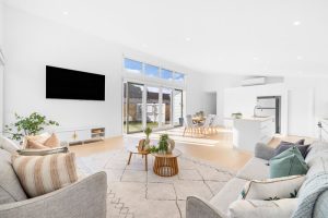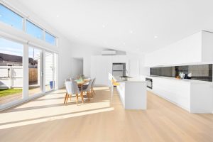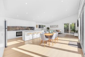 This single-storey brick veneer home was transformed into a bright, beach-inspired residence. The redesign included a rear extension with open-plan kitchen, dining, and living, plus a north-facing deck. The exterior was re-clad in weatherboard with Colorbond roofing, giving it a fresh, coastal feel.